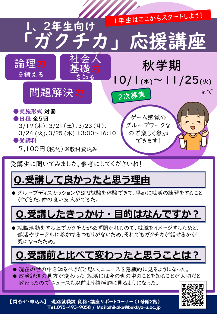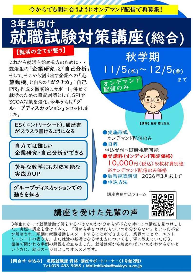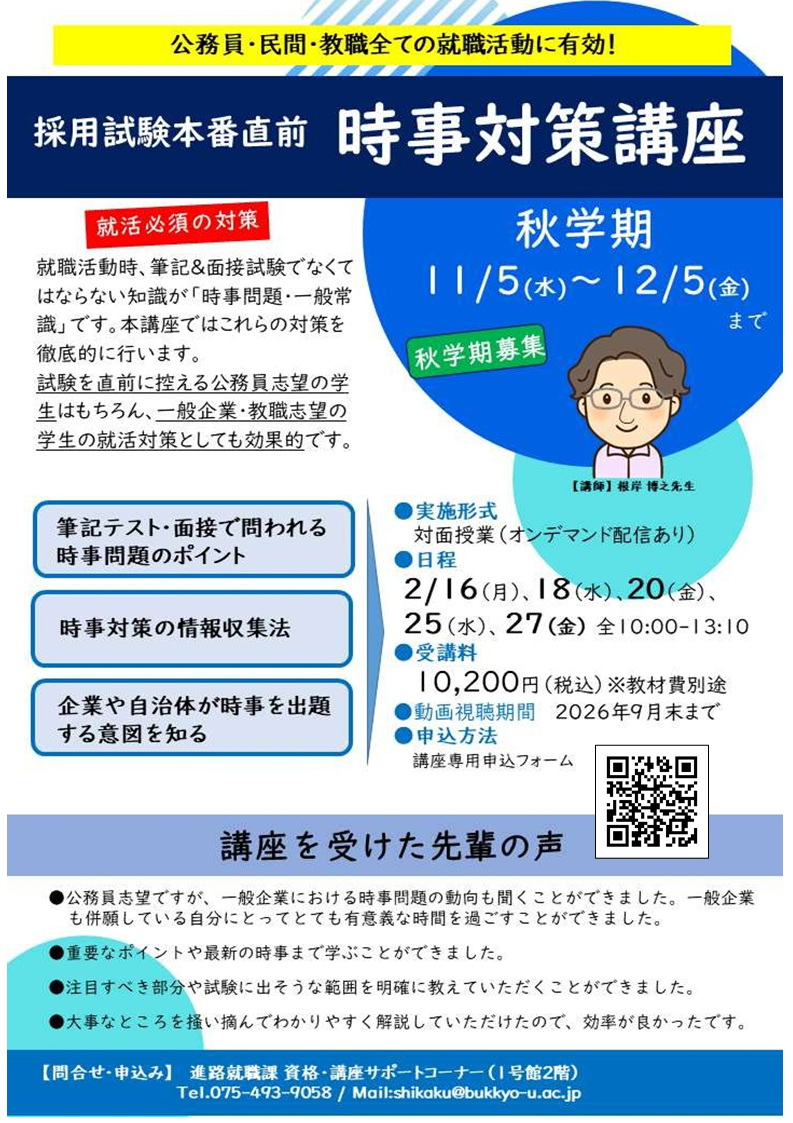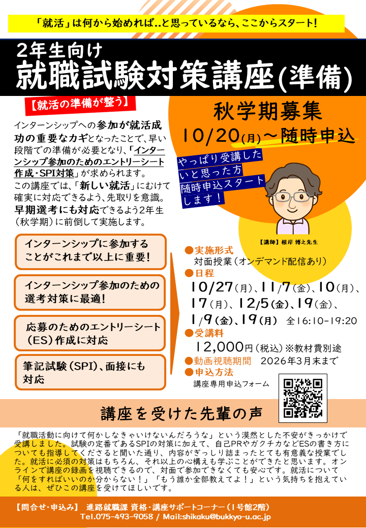 1年生~3年生を対象とした、就職試験関連講座を特集して掲載しています。