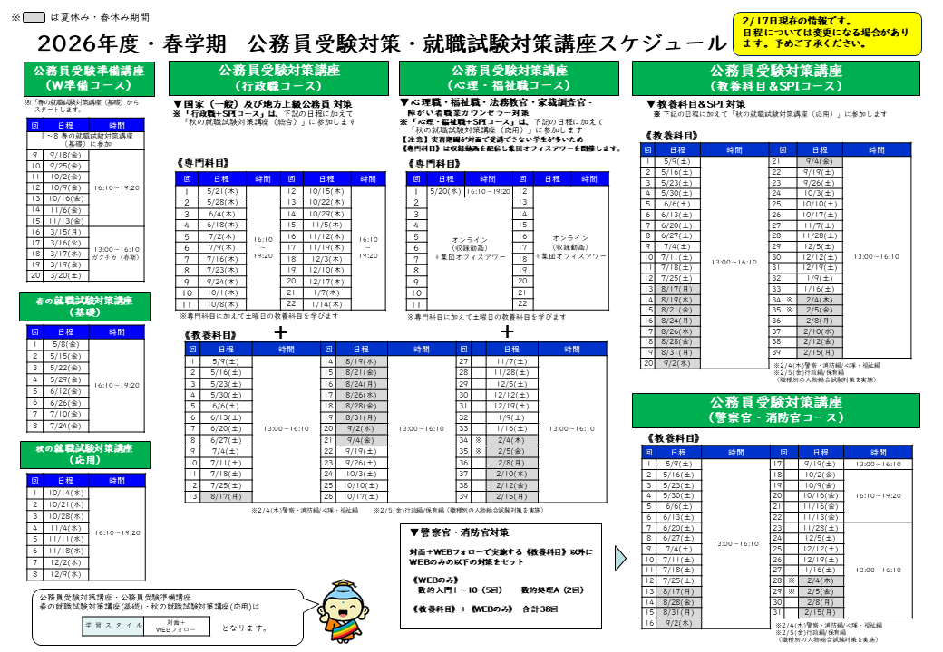 2026年度 公務員受験対策講座 スケジュール表は こちら